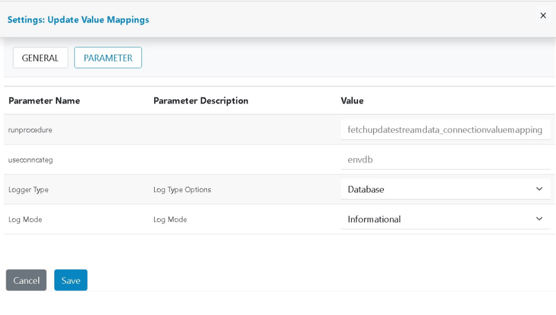 - The parameter section displays few read only details and the ones which are editable