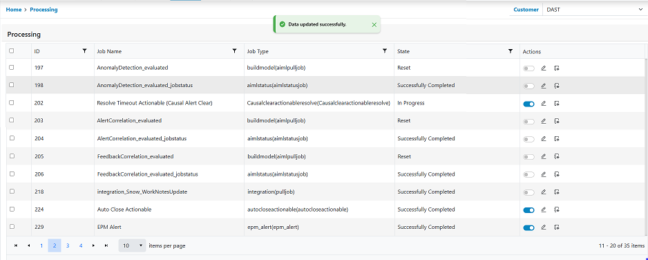 - If the processing is enabled, it is identified by a blue toggle button, toggling will disable the processing. For example, parse let us disable processing id 1. As can be seen it has enabled Click on the toggle button. On successful update the button will be disabled, and a successful prompt is displayed.
