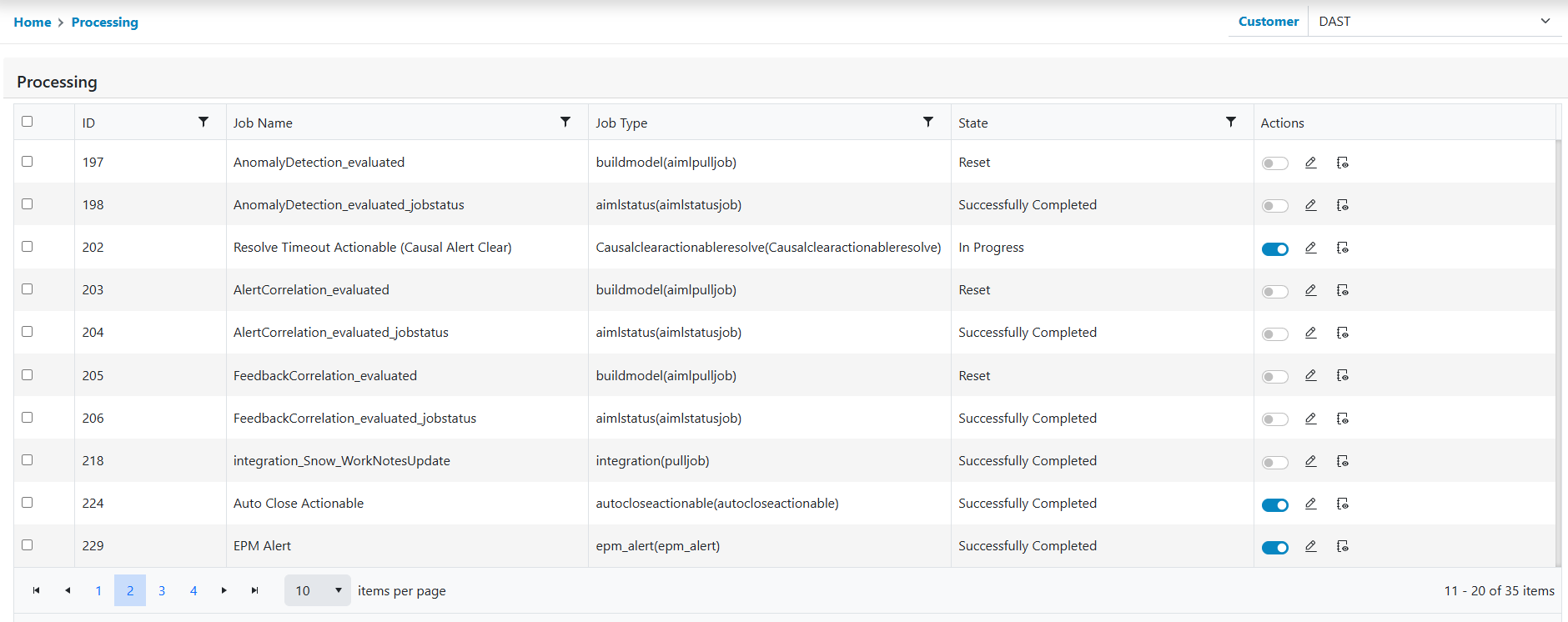 - Click on the Toggle icon in the Enable column next to the processing ID whose enablement