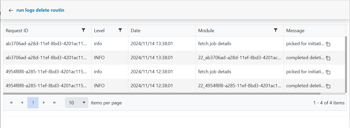 - Click on the Log icon next to the processing id whose log is to be seen.