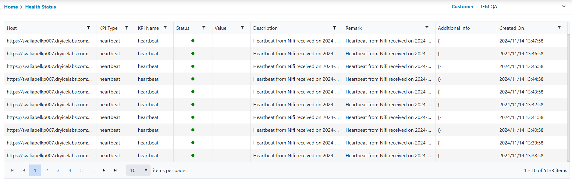 - The following slides open where the logs are displayed for the selected processing id. The icon color depicts whether the log is informational or is an error. Red icon denotes error.