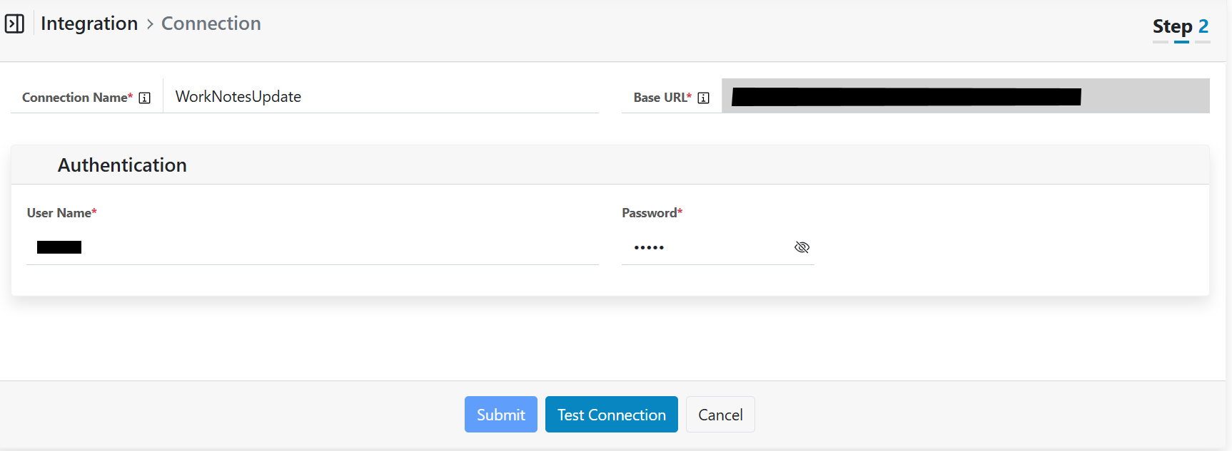 - Click “Submit” to add the connection for ticket worknotes update.