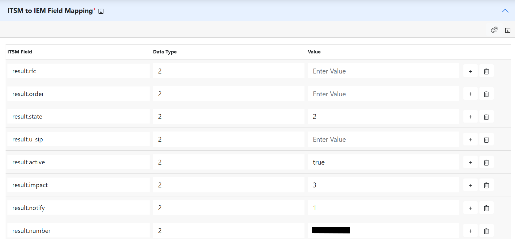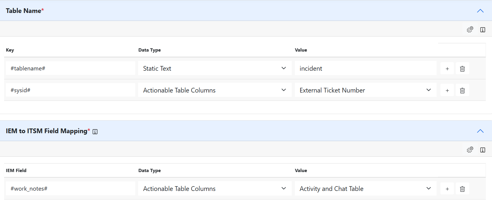 - Expand the “ITSM to IEM Field Mapping” default mapping list will be listed to add new