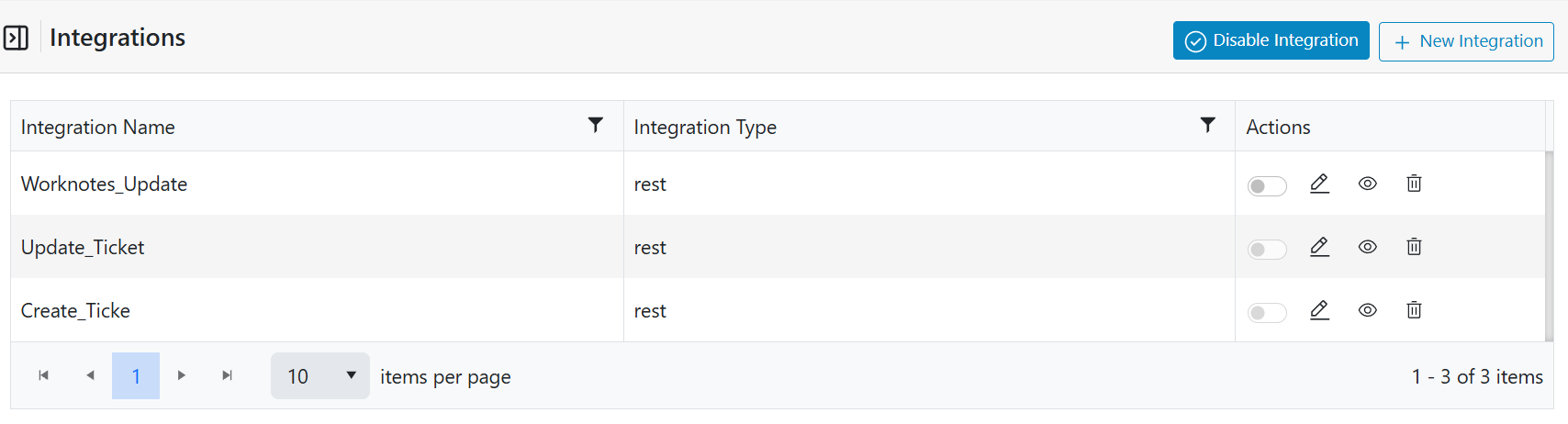 Follow up to point 6 mentioned in the “Create a New Incident Ticket” section to reach the “Integrations” webpage.