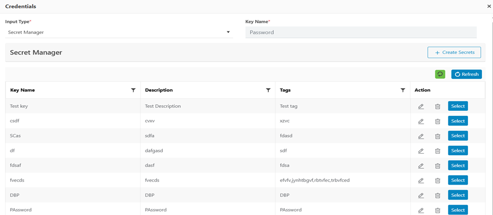 - Secret Manager – Select this option to select the existing secret created using Secrets Module.