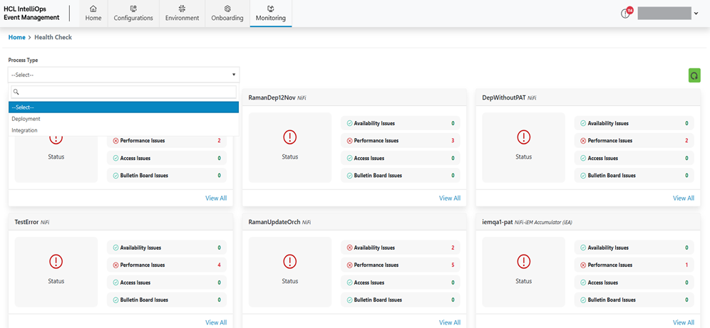 - Using Process Type drop-down, user can filter the tile accordingly.