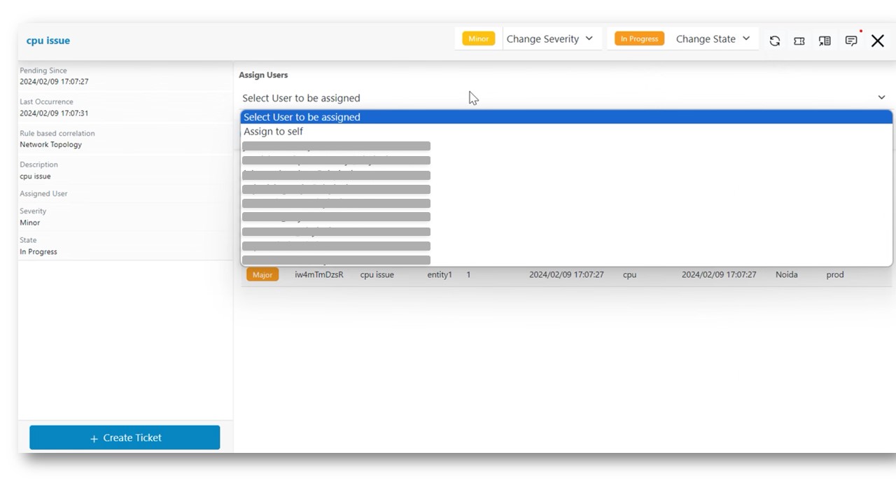 - Click on Assign to header present in the actionable popup. The drop-down list of users configured in the environment will be displayed.