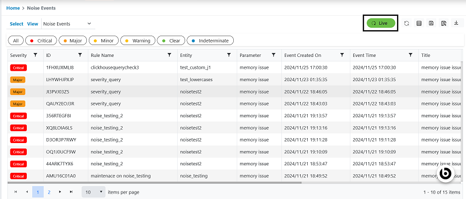 This option will enable users to stop/start live update of data being shown in grid. Please follow the steps below to enable/disable live noise events.