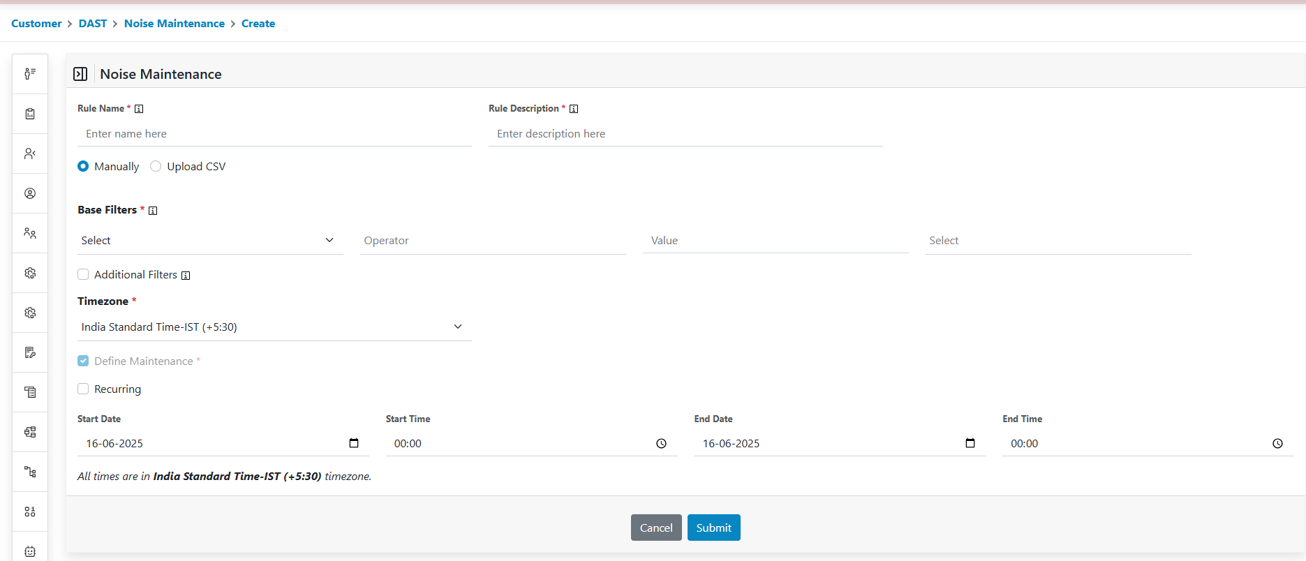 - In the base filters field, select the Entity, then select operator then give value. Users can add many base filters by clicking on +Add button.