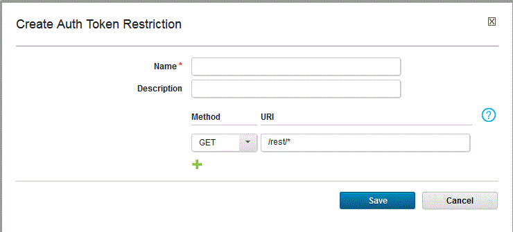 2. In the URI field, paste or enter the URI. The URI must start with the forward-slash character "/". You can use the asterisk (*) wildcard as the last character in the URI. For example, the following request allows information to be retrieved from all REST services: