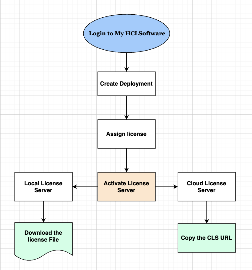 The following diagram shows a basic workflow that you need to follow to activate your license server: