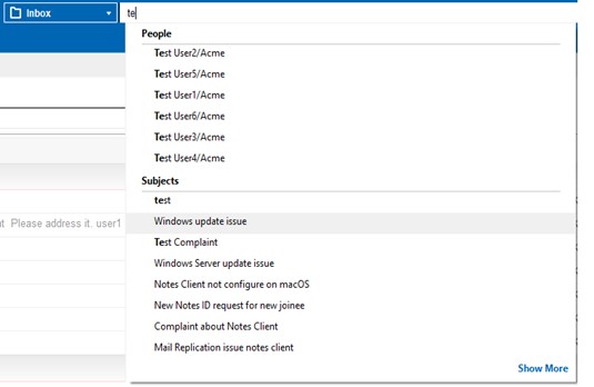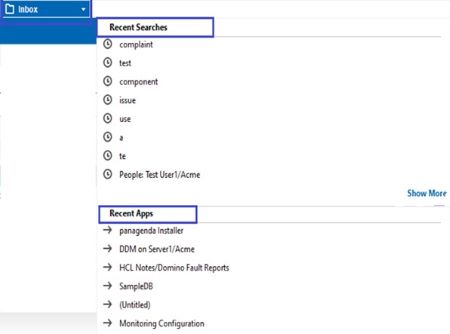 - "보기에서 검색" 표시줄이 개선되었습니다. 이 옵션을 사용하면 데이터베이스가 인덱싱된 경우 이메일 또는 문서를 빠르게 찾을 수 있습니다. "보기에서 검색"은 기본적으로 활성화되어 있지 않습니다. 활성화하려면 보기 메뉴로 전환하고 이 보기 검색을 클릭합니다.