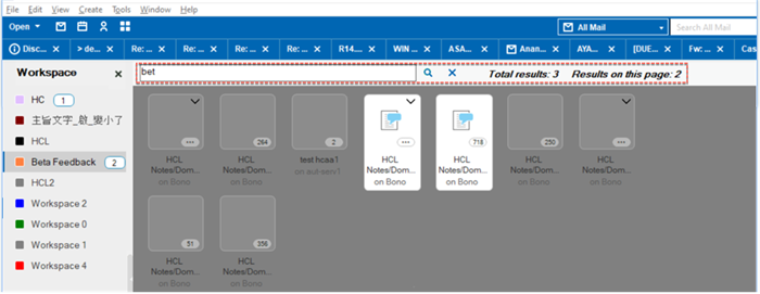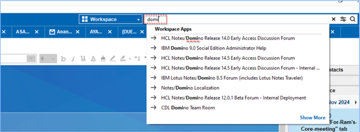 Tip: If you don't find the application you want on the current page, check the navigation for other workspace pages that show a number beside them, indicating search results. - From the Notes search center:Tip: If you want to disable the search feature in Workspace, you can you uncheck the Workspace in the Search preferences.