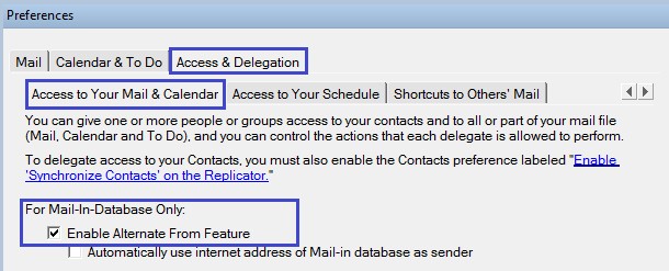 Note: Beginning in 12.0.2, you can enable Alternate From in all mail-in databases.There is also an option for mail-in databases to send mail using an internet address by default.