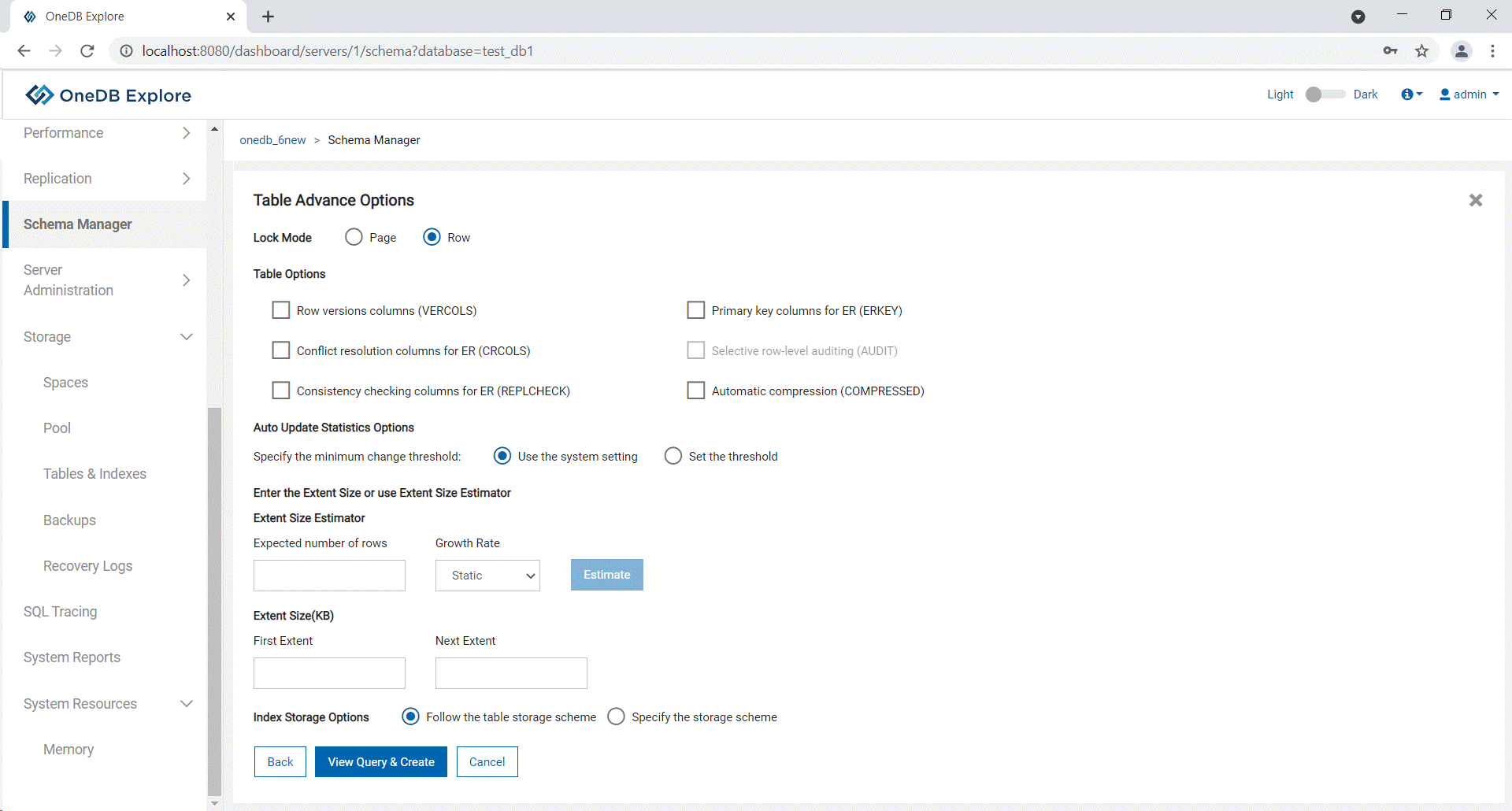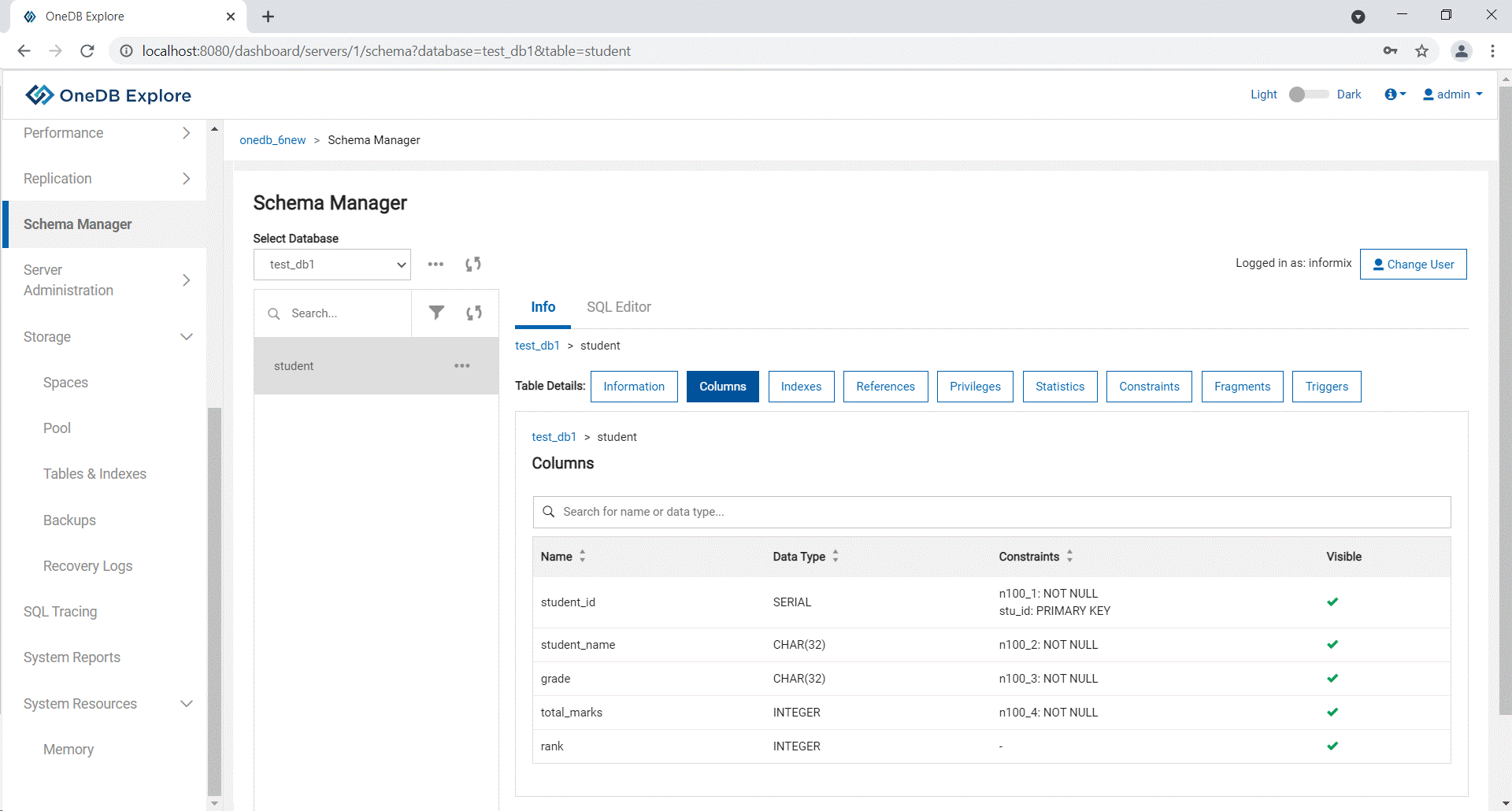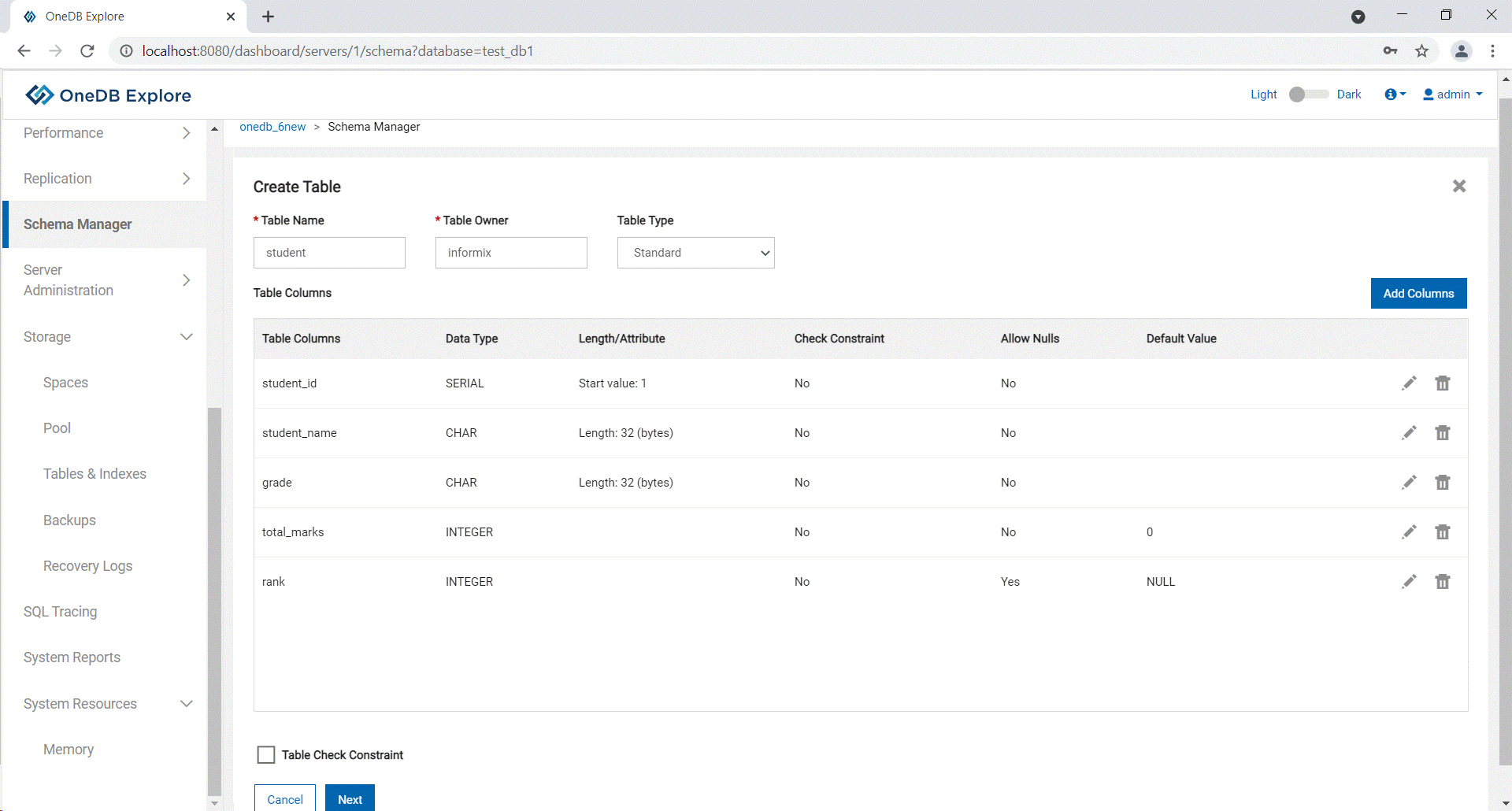 Creating a table using OneDB Explore