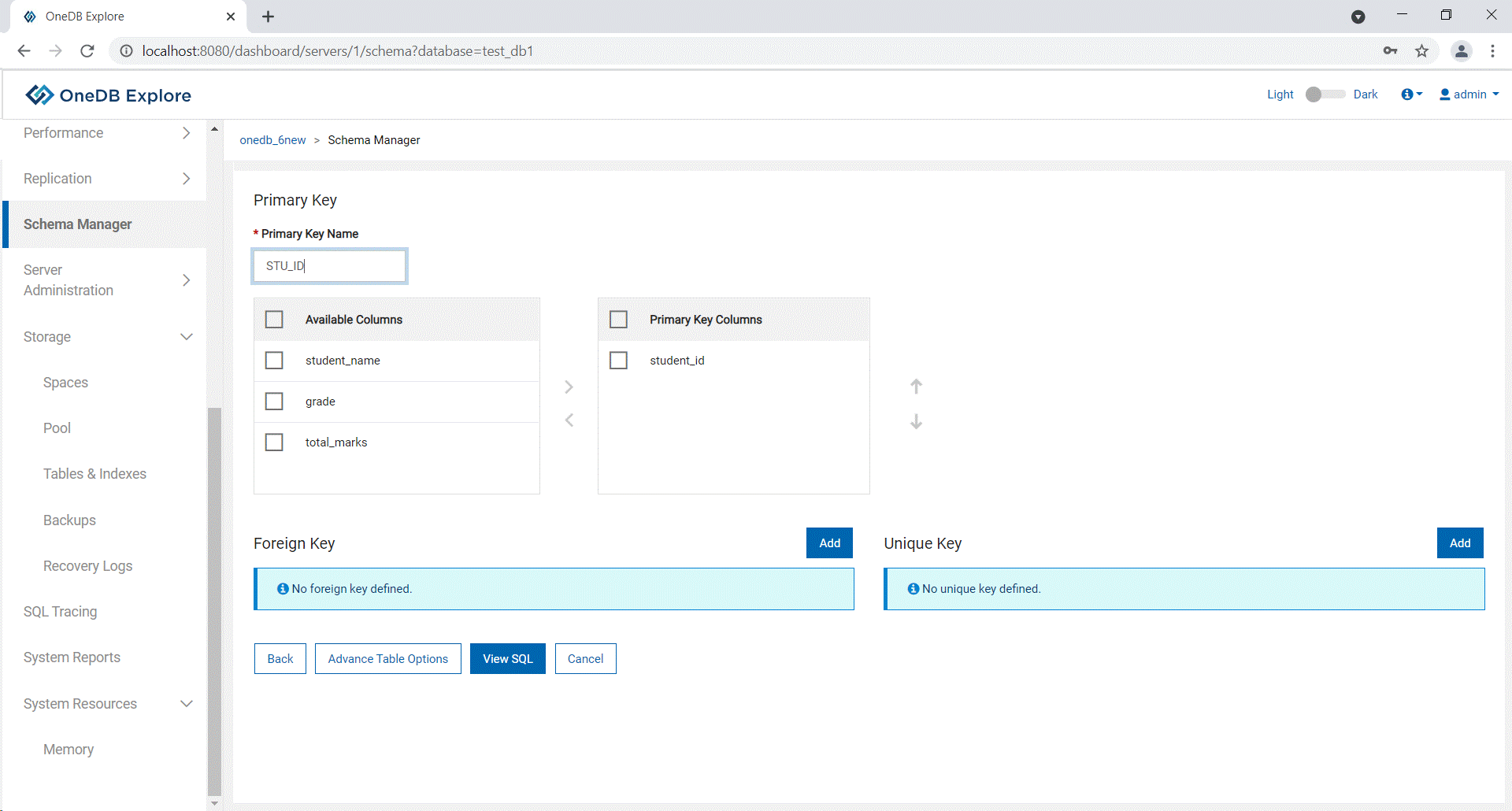Foreign Key and Unique Key as per the requirement. Either click View