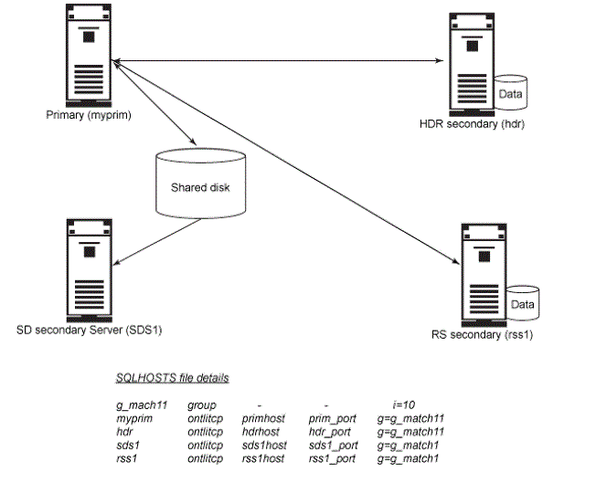 All servers in the cluster must have SQLHOSTS entries for all others.