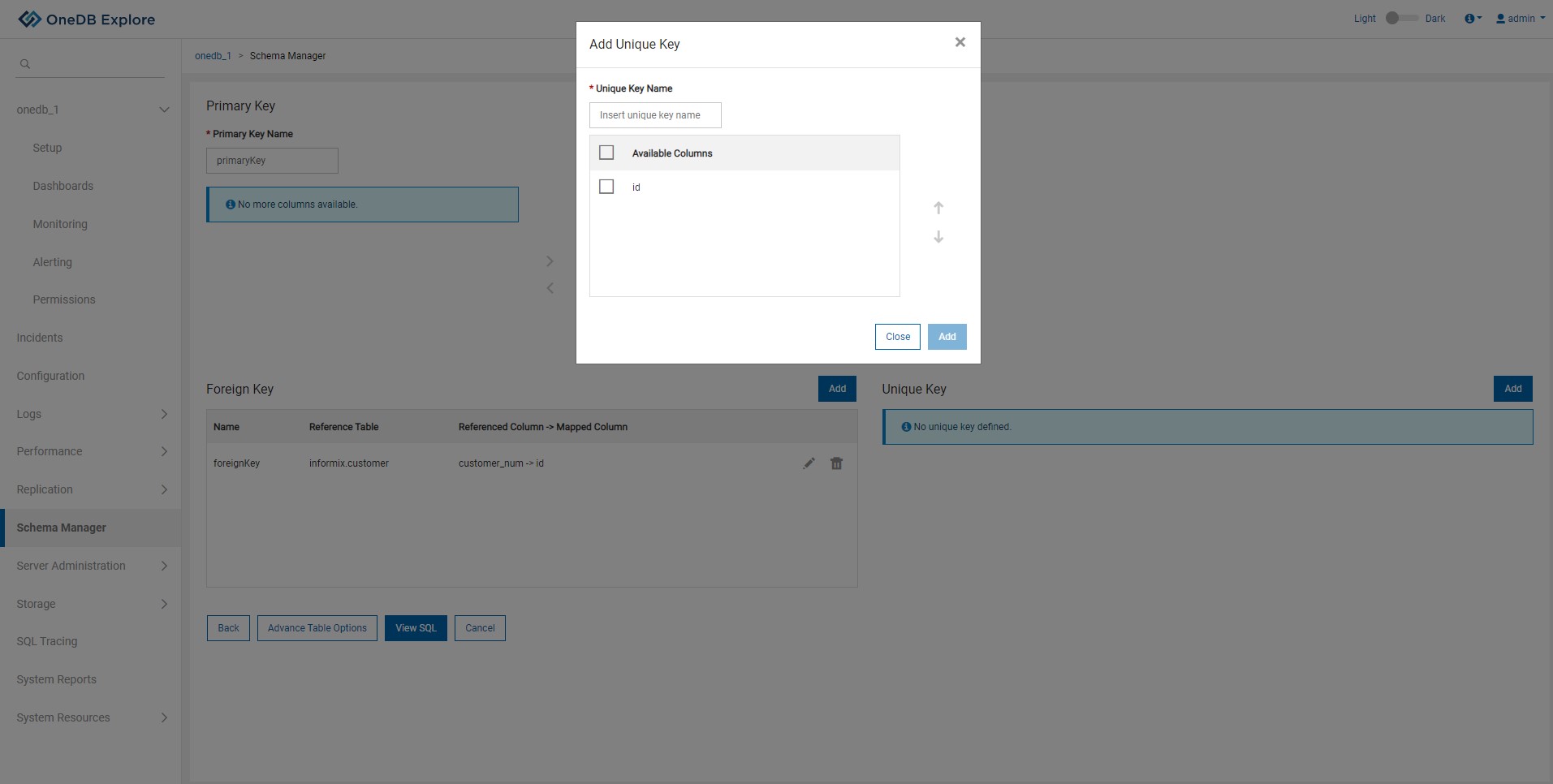 - To add a Unique key constraint, click on Add button in Unique key section.