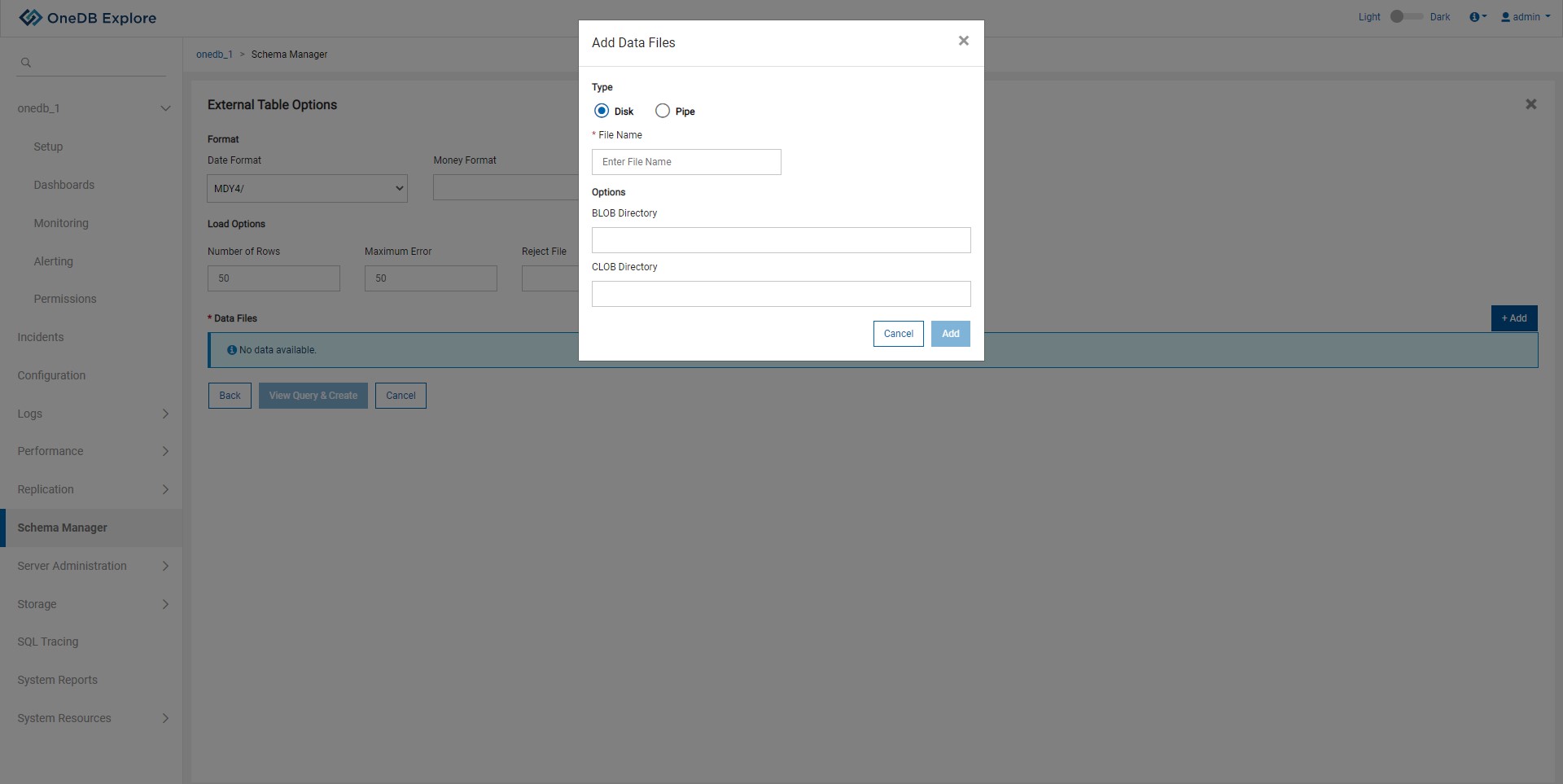 Following pop up is used to add data files to an external table.