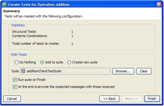 - Add to suite adds the new tests to an existing test suite, which is selected by clicking Browse and selecting the wanted suite.
