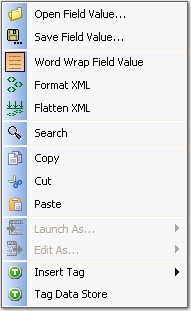 You can right-click in any of the editable text fields in the Field Editor to display the following menu:
