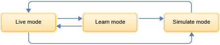 The purpose of learn mode is to fill the simulation database, which facilitates the creation of database stubs. Creating a stub and then starting it moves the learn mode to simulate mode, and stopping the stub moves the simulate mode to live mode. When in live mode, it is possible to enter learn mode again.