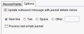 Under the Options tab, you can configure the packetizer and delimiter details.