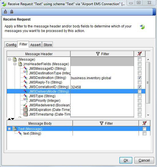 In this case, JMSDestination must equal "business.inventory global" and JMSCorrelationID must equal "32458". Otherwise, HCL OneTest API discards the message.