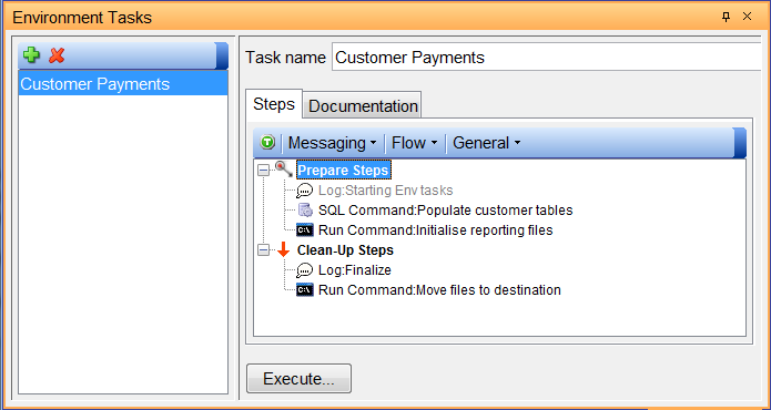 To test the configured tasks immediately in Test Lab, click the Execute button.