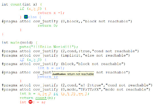 The Hit Count tool-tip is a special capability that displays the number of times that a selected branch was covered.