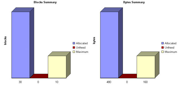 The summary diagrams give you a quick overview of memory usage in blocks and bytes.