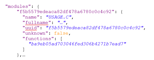 - unknown is set to true is the module is not part of the information you provided (there is only one unknown module that gathers all the call to functions that are not in the known modules),