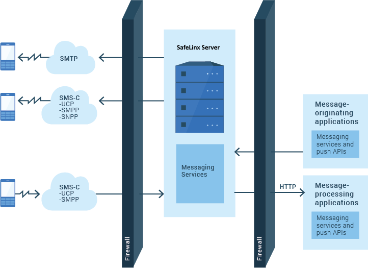 Inside the firewall, an HTTP access service relays authenticated HTTP encapsulated traffic from client applications to an internally located HTTP proxy or application server. Optionally, you can also use TLS to secure the connection between the HTTP access service and the HTTP proxy server or application server. If client applications access a server that generates an HTTP redirect, use TLS to secure the communications to the application server or proxy. The generated redirects are then also forced to use TLS.
