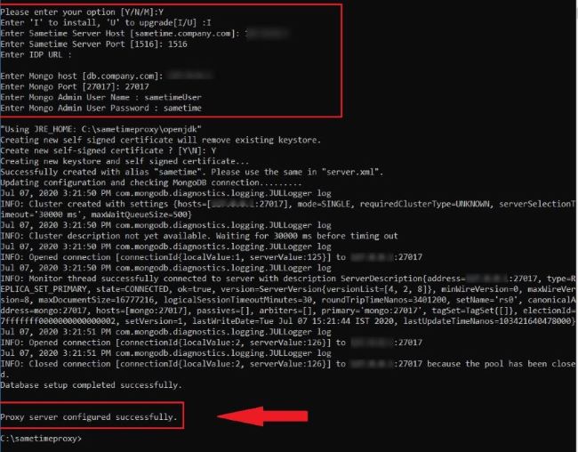 Simple prompts will ask for the address of the Sametime Community and MongoDB servers.