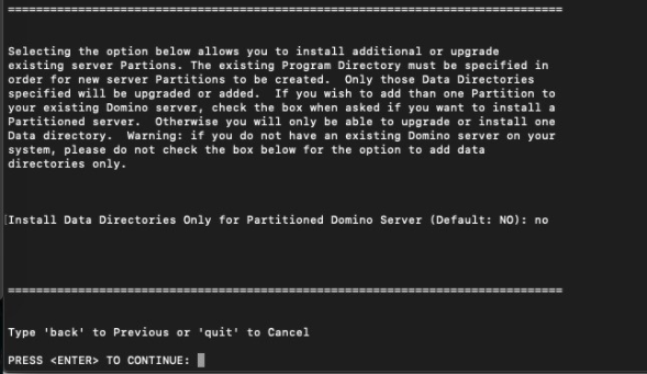 At the prompt “Install Data Directories Only for Partitioned Domino Server”