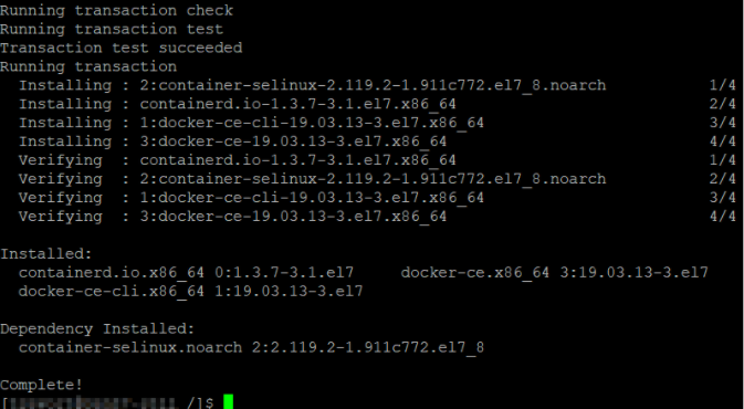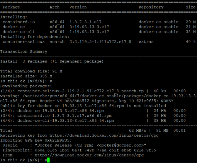 $ yum install docker-ce docker-ce-cli containerd.io