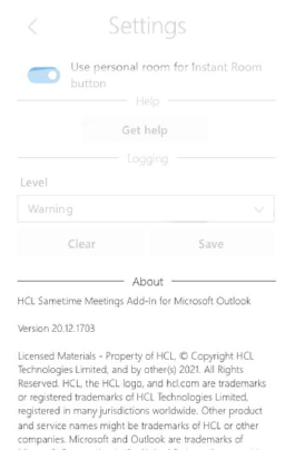 An about screen or dialog is available within the add-in task pane and, the user can access it after starting any action that opens a task pane or dialog. The user can access the about screen whether the user is signed in or not. It contains the add-in version information and copyright notices.
