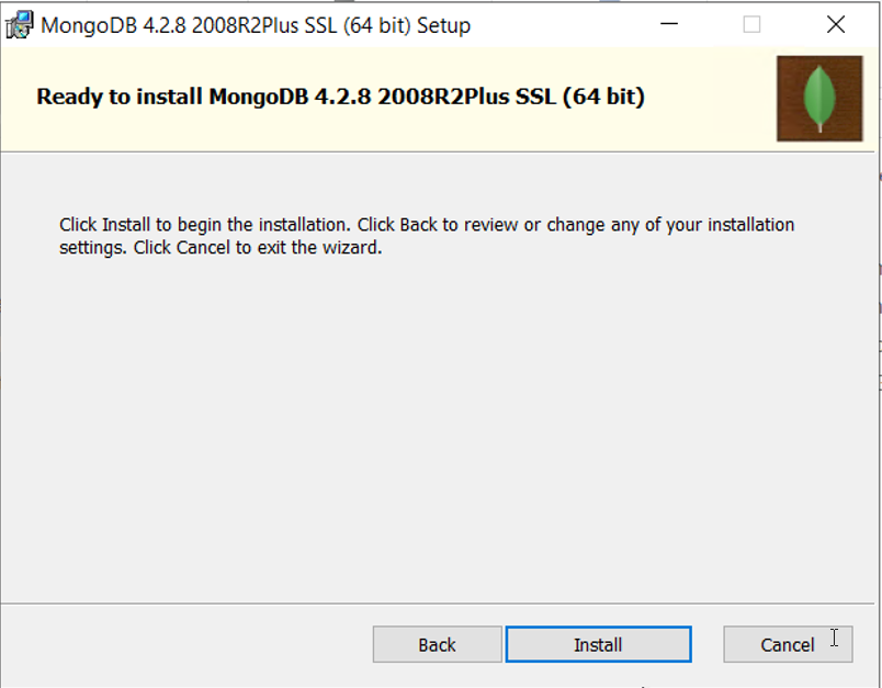 - 以下のインストール画面ショットは 4.2.8 から提供されています。MongoDB 4.4.x のインストールは非常に似ています。