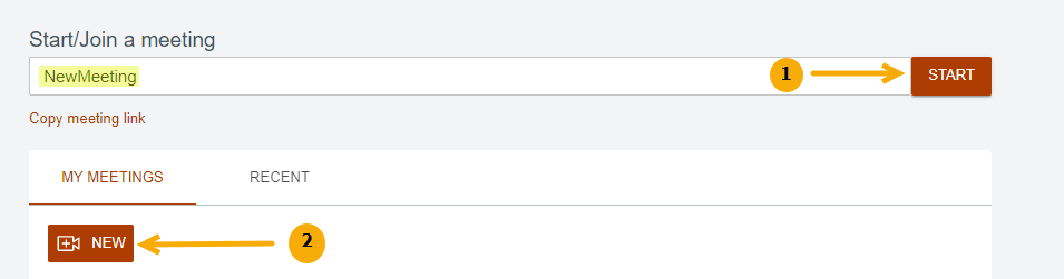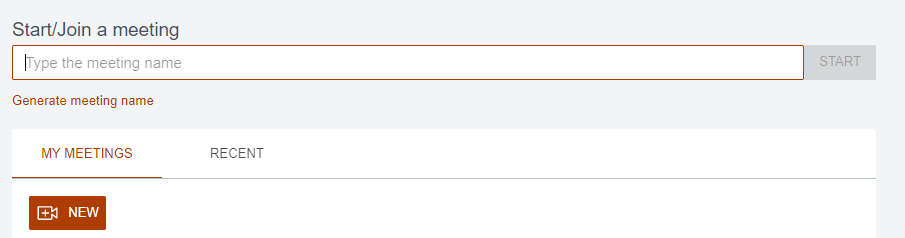 - 「開始」をクリックするとミーティングは「自分主催のミーティング」セクションに自動的に保存され、所有者はアクティブなミーティングルームにリダイレクトされます。
