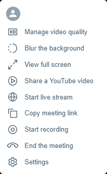 機能から次の機能を利用できます。録画、ミーティングの終了、YouTube 統合機能、追加設定の構成。