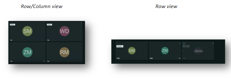 表示を切り替えると、参加者全員が行/列の形式でミーティングウィンドウの中央に均等に配置されます。
