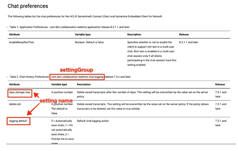 the Chat Preferences, table 2 is for Chat History Preferences. The