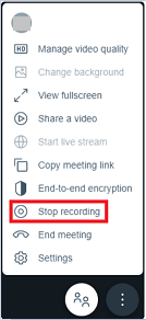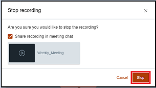 Note: The recording automatically stops when no sound is detected for 10 minutes or when the last person leaves the meeting.