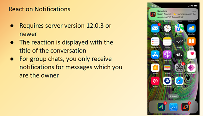 - Sounds have always played for incoming chat and announcement notifications when the app is in the background. With version 12.0, a sound also plays for these events when the app is in the foreground. You can turn the sounds on by using the new notification settings.