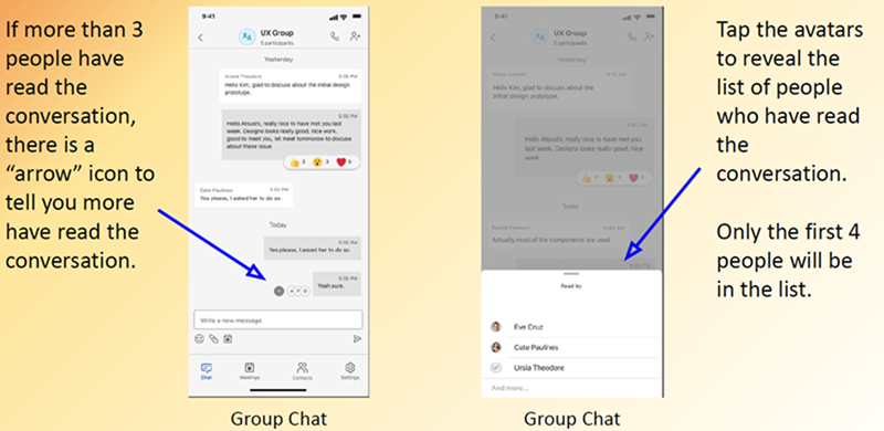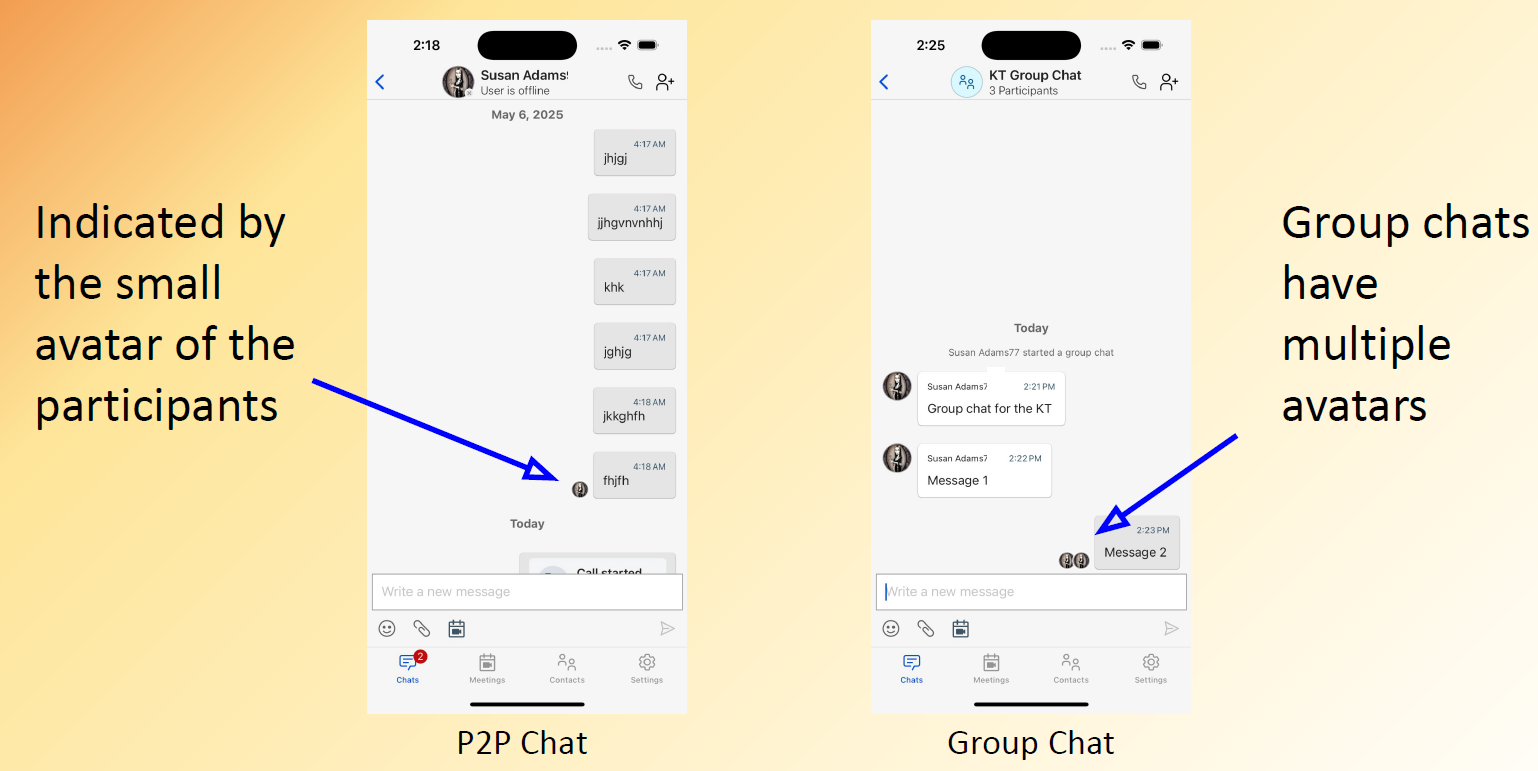 - When viewing active chats you can filter on one-to-one chats, group chats, and meeting chats.