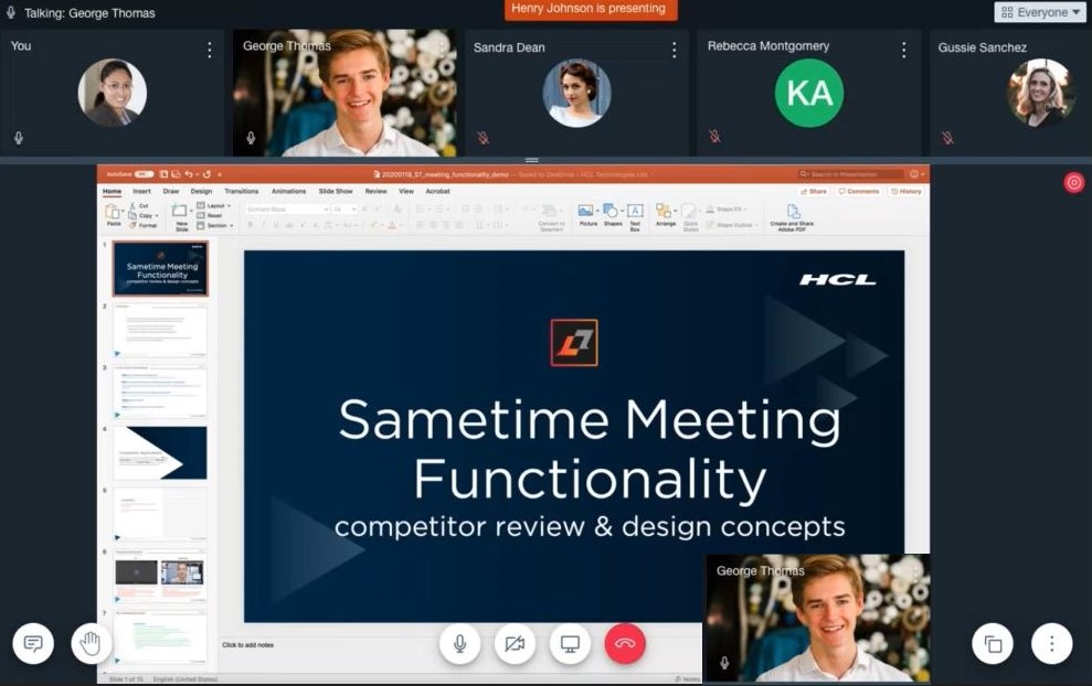 In presenter mode, all attendees see the presenter's face along with the presentation.