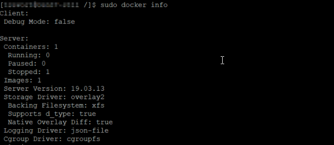 After the install is complete, use the following Linux shell command to confirm that Docker is running, which returns the docker information.