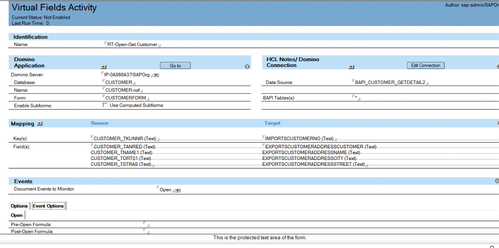 This example activity does not call a transaction. Because it calls an RFC, it does not use the Stored Procedure settings.