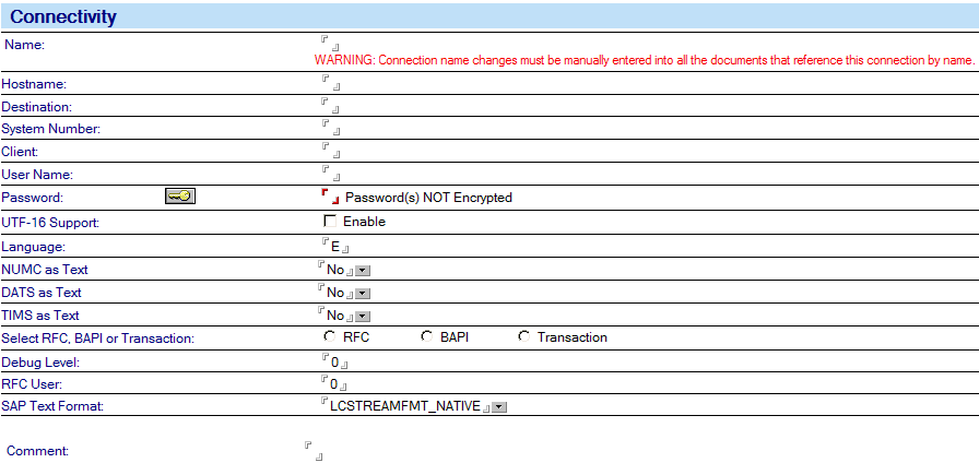 | UTF-16 Support | On selecting this option, the SAP connection will use SAP unicode (UTF16) connector instead of non unicode connector for its operations. |