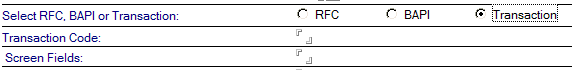 If you select RFC or BAPI, the options are as follows: RFC or BAPI -- Enter the name of the RFC or BAPI that you want to call, for example, BAPI_CUSTOMER_GETDETAIL2. Tables -- Click the down arrow to see a list of available tables in the RFC or BAPI that is specified in the "RFC or BAPI." Columns -- The available columns based on the selected Table(s). If you select Transaction, the options are as follows: Transaction Code -- Enter the transaction code you want to call using batch mode processing, for example ME21 or XDO2. Screen Fields -- Used to define the screens of a transaction. Used only when an R/3 transaction is the target. Enter the screens and their fields needed to call this transaction. The field definitions for each Screen used is defined by the program name with a leading ‘$’ and the Dynpro number as a value, this is followed by the input field names. If a field is assigned a value, the field is assumed to be constant. Blank lines are ignored. For example, for XD02, the list would be as shown below: $SAPMF20D = 0101 RF02D-KUNNR RF02D-D0110=X BCD_OKCODE=/00, and so on. This is only a partial list. |